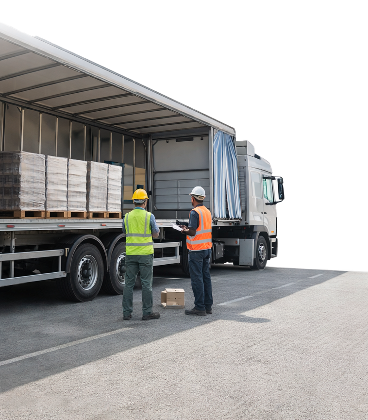 El camión realiza el reparto y la descarga en destino.