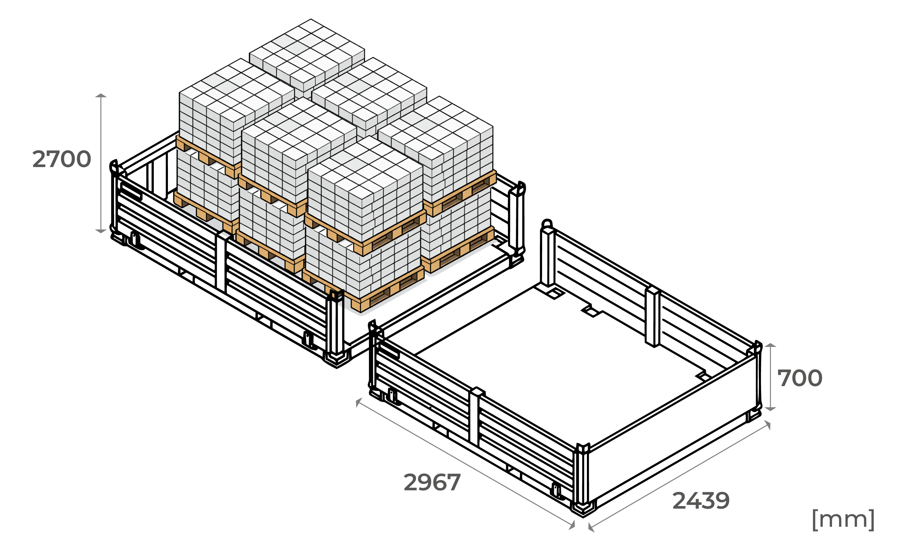 Capacidad aproximada por módulo: hasta 4 t. Volumen útil: 5 m3
