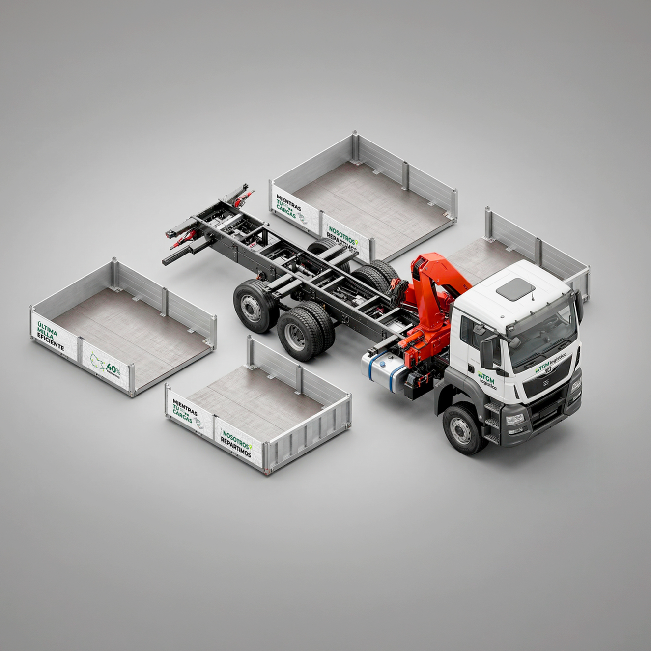 TGM Logística trabaja con un camión grúa equipado con 4 cajas desmontables.